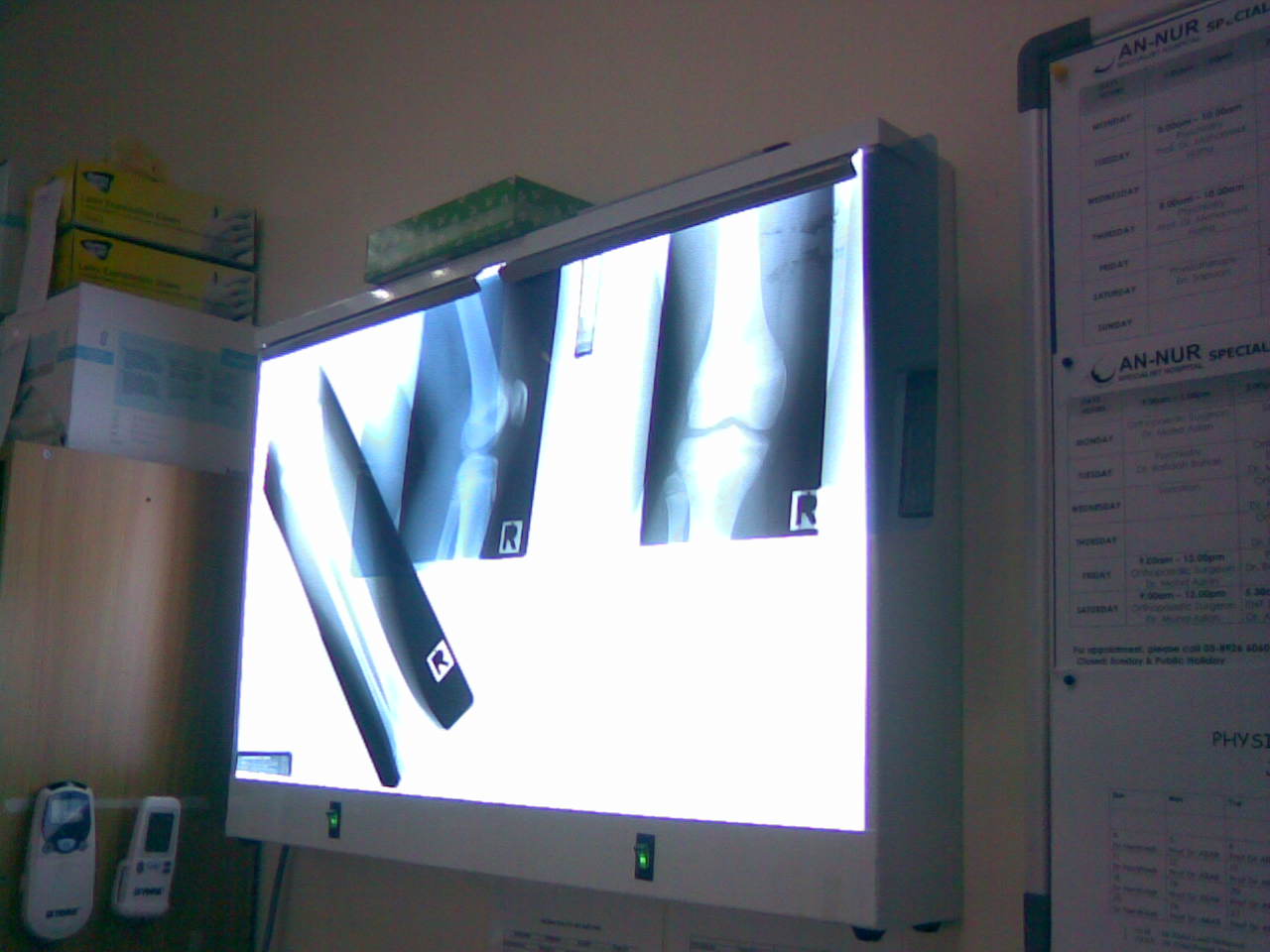 Pas X-ray, doktor mulakan sesi "menjahit". Dibahagian lutut yg paling koyak dlm. Doktor jahit sbyk 2 lapisan.Bahagian dlm & luar.